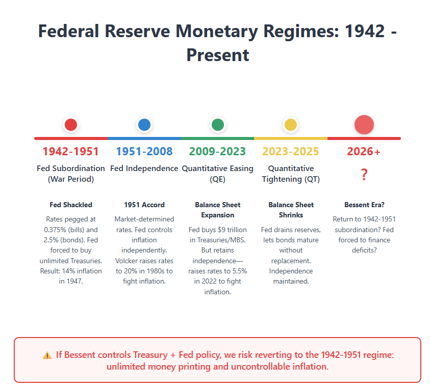 For monetary policy history buffs, here is a generally correct timeline of the monetary policy regimes discussed in this post. Graphics: Claude.