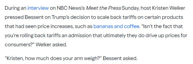 The coup de grâce for me came Sunday, when I saw this clip in which Bessent ridicules and rips not only the directors of the Federal Reserve, but the staff.