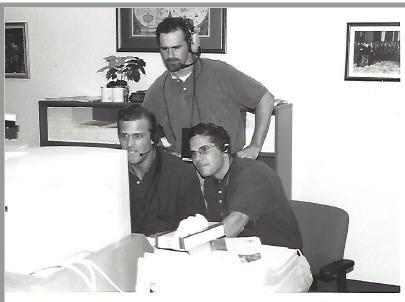 Jimmy, on the right, on the Floor of the Merc, ca. 1995