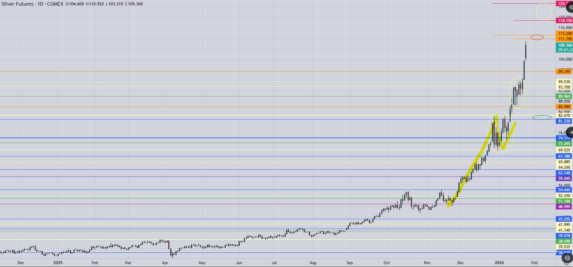 Jimmy’s poetic technical analysis of Silver Futures on January 26, 2026
